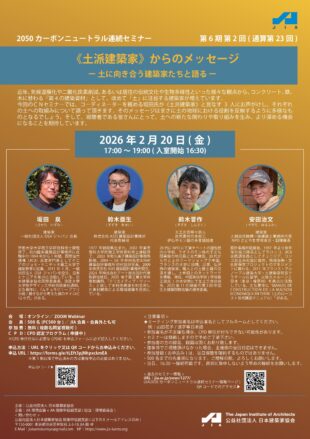 | 主催・共催等 | 主催: 公益社団法人 日本建築家協会 近畿支部 住宅部会 |